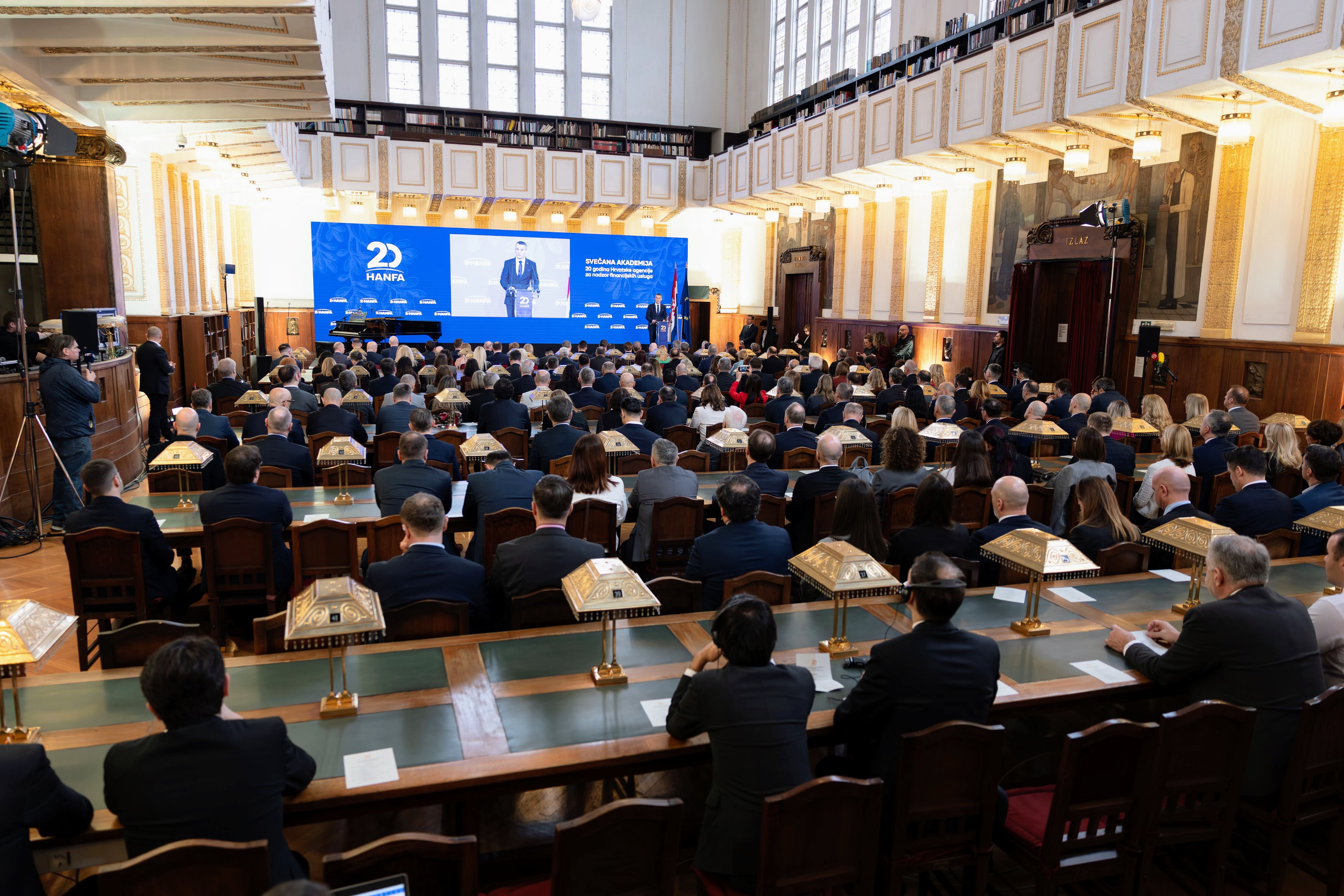 At a ceremonial event held today at the Croatian State Archives in Zagreb, the Croatian Financial Services Supervisory Agency (Hanfa) marked two decades of activity, during which it has grown into a distinctive and modern institution that contributes to the development and stability of the Republic of Croatia's financial system, the improvement of regulation in the financial services market, and the protection of consumers of financial products and services.
