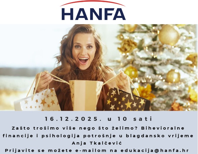Edukativno predavanje „Zašto trošimo više nego što želimo? Bihevioralne financije i psihologija potrošnje u blagdansko vrijeme“ Hanfa će održati online 16. prosinca 2025. u 10 sati.