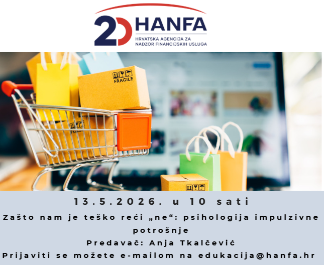 Online predavanje održat će se 13. svibnja 2026. u 10 sati i otvoreno je za sve zainteresirane. Sudjelovanje je moguće uz prijavu do 12. svibnja 2026. na adresu e-pošte edukacija@hanfa.hr, nakon čega će stići odgovor s uputom za priključivanje.