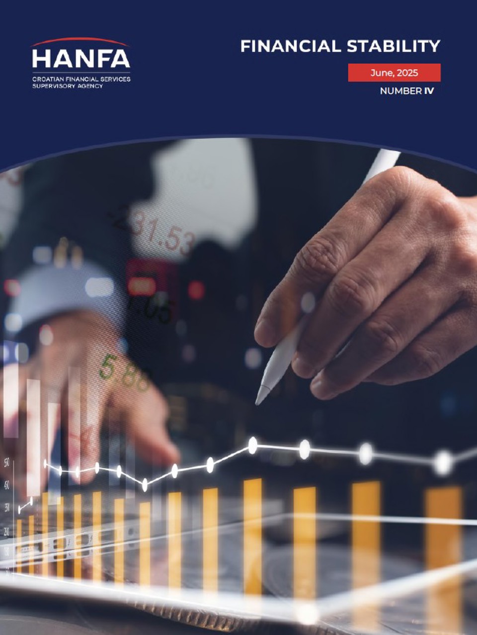 The annual publication Financial Stability provides a detailed analysis of trends and risks relating to individual segments of the financial services sector, namely the insurance, leasing, factoring, investment fund and pension fund industry. It also provides an assessment of their exposure (and contribution) to systemic risks, including an analysis and assessment of risks pertaining to each of these financial sector segments in the context of international and domestic macroeconomic, monetary and financial developments. The publication also assesses the overall exposure of the entire financial services sector to systemic risks, both those that are of short-term, i.e. cyclical nature, as well as those that are long-term, structural risks. It also presents the results of stress testing of the financial services sector under highly unlikely but plausible macroeconomic and financial shocks. In this way, the publication Financial Stability provides a comprehensive and systematic insight into the risks the domestic financial services sector is exposed to, analysing their nature and character for the purpose of enabling timely and adequate macroprudential measures aimed at preventing the materialisation of such risks and deterioration of the stability of the domestic financial system, and at enhancing the system’s resistance to shocks.