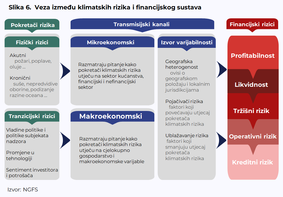 Sistemski rizici povezani s klimatskim promjenama sve su izraženiji dugoročni izvor rizika za financijski sustav. Oni podrazumijevaju više različitih oblika rizika poput fizičkih rizika, izazvanih ekstremnim vremenskim događajima, te tranzicijskih rizika, koji nastaju zbog prelaska na niskougljično gospodarstvo. Iako klimatske promjene predstavljaju sistemski rizik za financijski sustav, on može igrati ključnu ulogu pri zelenoj tranziciji gospodarstva te značajno doprinijeti ublažavanju posljedica klimatske tranzicije. Važnost zelenog i održivog financiranja na ukupnom tržištu i dalje je relativno skromna, no ubrzani razvoj održive regulacije (Uredba o taksonomiji, Direktiva CSRD, Uredba SFRD) i svijesti o važnosti pravovremenog adresiranja klimatskih rizika pozitivno doprinose razvoju održivih oblika ulaganja. Zelena tranzicija, uz mnogobrojne nove investicijske prilike, nosi i nove izazove koje je važno kontinuirano pratiti te pravodobno adresirati kako bi se u toj nužnoj tranziciji osigurala stabilnost financijskog sustava.