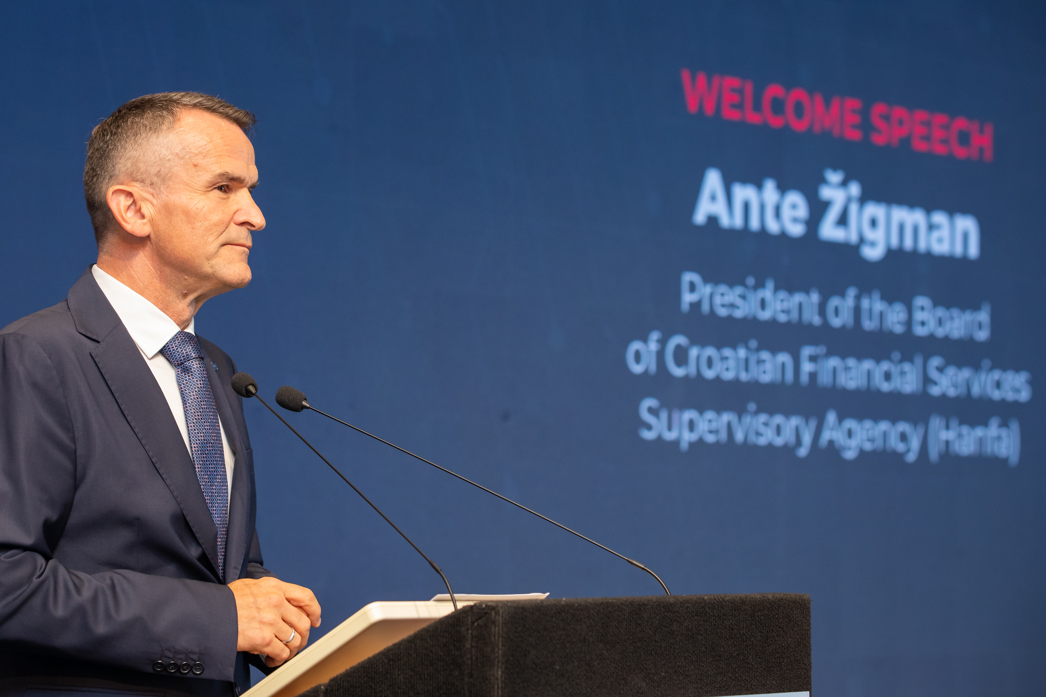 Predsjednik Upravnog vijeća Hanfe Ante Žigman pozdravio je prisutne te se osvrnuo na povod ovog međunarodnog okupljanja istaknuvši da tehnologija mijenja i tržišta koja nadziremo i način na koji ih nadziremo. Naglasio je važnost pojednostavljenja i usklađivanja regulative uz očuvanje stabilnosti i povjerenja na tržištima kapitala. Istaknuo je da cilj nije deregulacija, nego pametnija regulacija koja potiče inovacije i jača konkurentnost europskih tržišta. Među izazovima koje je izdvojio našla se i primjena novih tehnologija, uključujući umjetnu inteligenciju. „Umjetna inteligencija sada je snažan čimbenik u trgovanju, upravljanju portfeljima i analizi rizika, pri čemu donosi učinkovitost, ali i nove oblike ranjivosti“, rezimirao je Žigman.