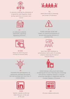 In 2020, Hanfa recorded positive business results. Pursuant to the Act on Amendments to the Act on the Croatian Financial Services Supervisory Agency, on 9 March 2021, it transferred the surplus income over expenditure, totalling HRK 2.9m, into the state budget of the Republic of Croatia.