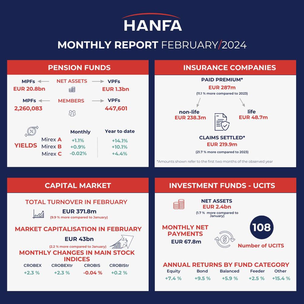 The net assets of the Fund for Croatian Homeland War Veterans and Members of their Families amounted to EUR 150.5m (a 0.5% monthly decrease), with the monthly return of the fund reaching -0.4%.