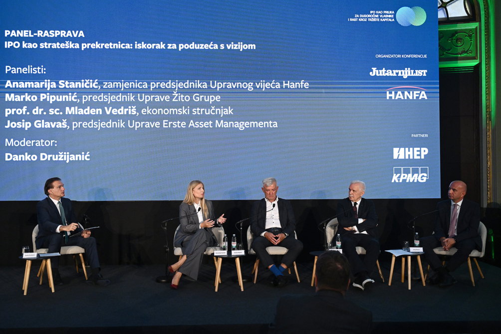 In the panel discussion “IPO as a Strategic Milestone: A Step Forward for Visionary Companies”, speakers Marko Pipunić (Žito), Josip Glavaš (Erste Asset Management), economist Mladen Vedriš, and Anamarija Staničić (Hanfa) shared their experiences and perspectives on the importance of capital market for the growth and development of companies.