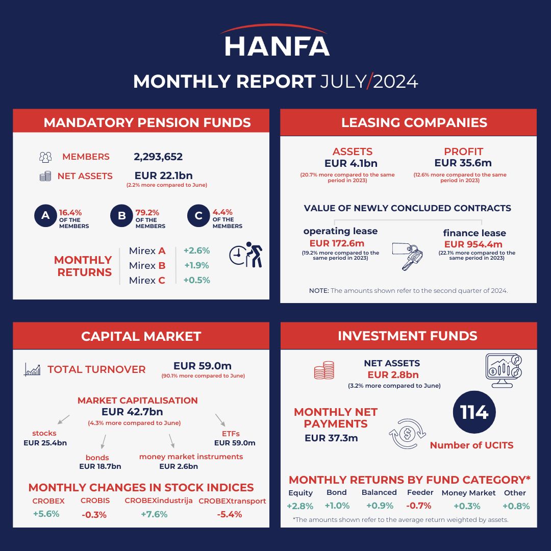 Net assets of the Fund for Croatian Homeland War Veterans and Members of their Families amounted to EUR 173.9m (a 2.7% monthly increase), with the monthly return of the fund reaching 2.9%.