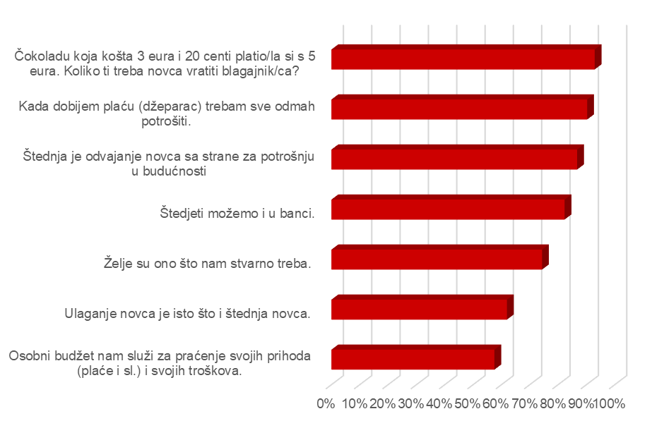 Navedeni rezultati ukazuju na važnost provođenja edukacije učenika o financijama s ciljem jačanja svijesti o važnosti financijske pismenosti i upoznavanja s osnovnim financijskim pojmovima od najranije dobi.