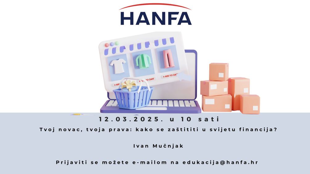 Za online sudjelovanje na predavanju potrebno je izvršiti prijavu na e-mail: edukacija@hanfa.hr, nakon čega će stići odgovor s uputom za online praćenje predavanja.