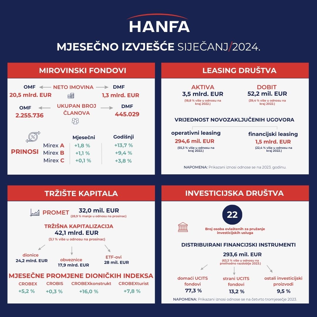 Pregled aktivnosti subjekata u sektoru financijskih usluga za siječanj 2024.