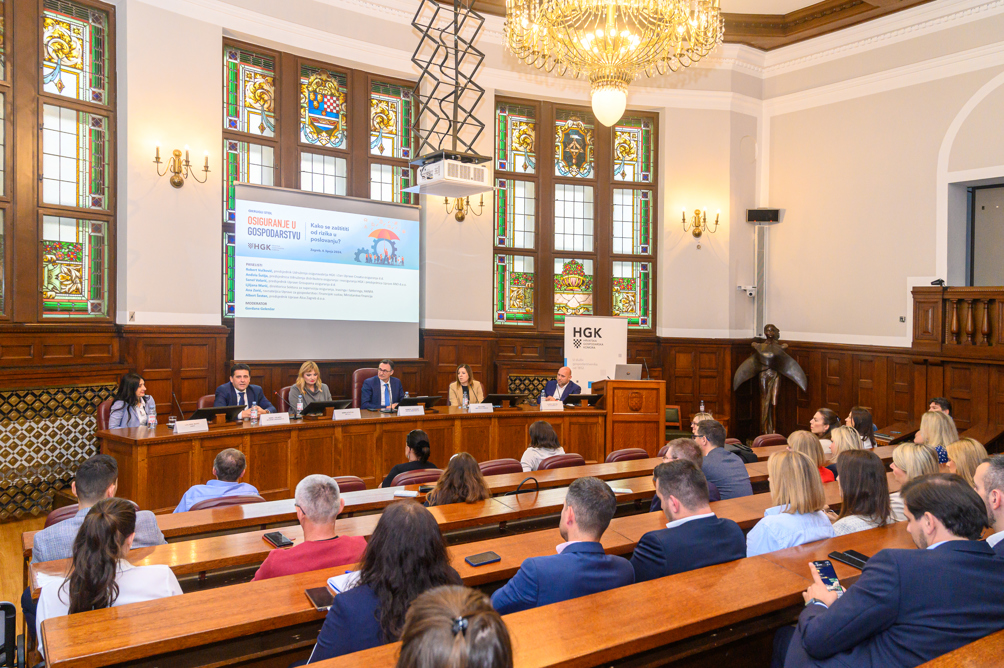 U uvodnom izlaganju glavni ekonomist HGK Goran Šaravanja dao je osvrt na aktualna gospodarska kretanja, a istraživanje je predstavio Ante Šalinović, direktor istraživanja agencije IPSOS, koja je za potrebe HGK provela istraživanje u veljači ove godine na uzorku od 202 tvrtke. Ispitanici su bile odgovorne osobe koje u tvrtkama odlučuju o financijama i koje su zadužene za poslovanje s osiguranjima, a u pripremi istraživanja sudjelovali su predstavnici komorskih Udruženja osiguravatelja i Udruženja distributera osiguranja i reosiguranja.